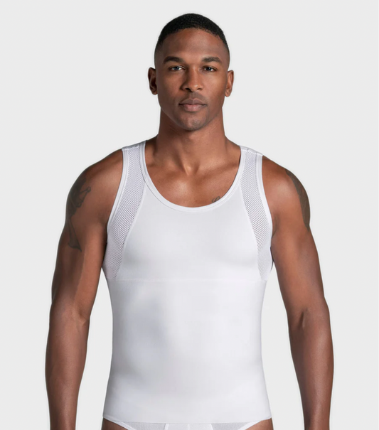 035022 Mens Stretch Cotton Moderate Compression Shaper Tank with Mesh Cutouts