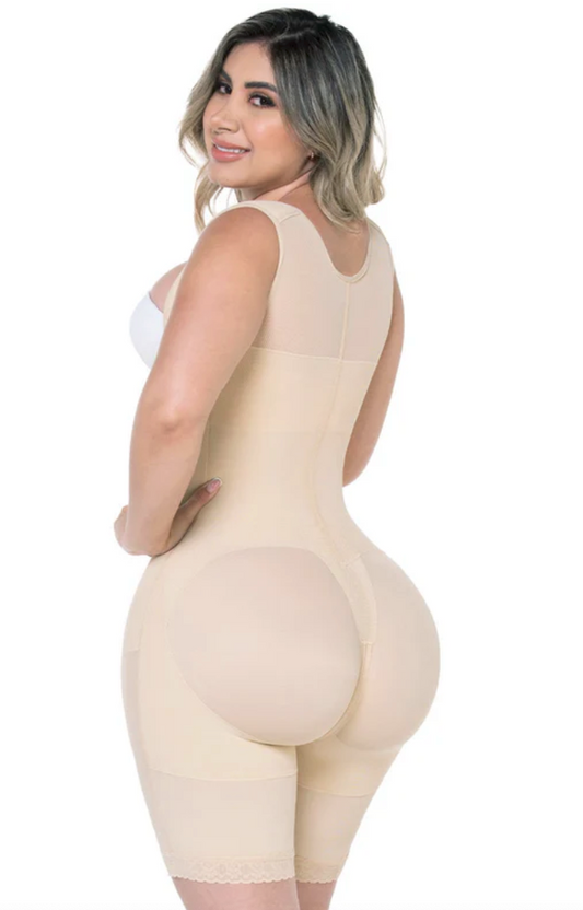 0489 M&D Fajas Colombianas Post Surgery Mid Thigh Shapewear Bodysuit for Guitar and Hourglass Body Types